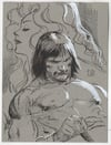 Barbarian original sketch by Lee -- done in pen, brush, ink and white on 184 lb. 6X8 toned mixed media paper.